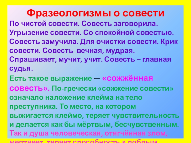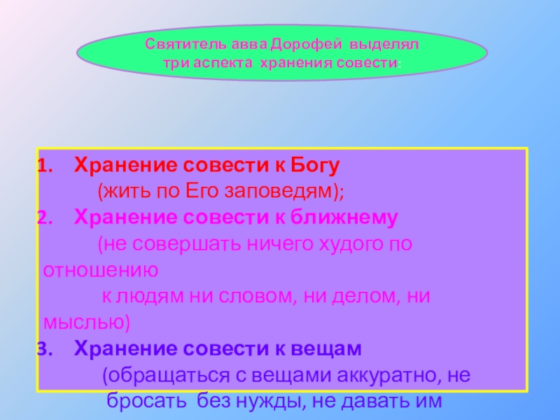 Имеющий добрую совесть, хотя и одет он в рубище, хотя и борется с голодом, благодушнее живущих роскошно; но сознающий за собой худое, хотя обложен кучами денег, беднее всех». Св. Иоанн Златоуст