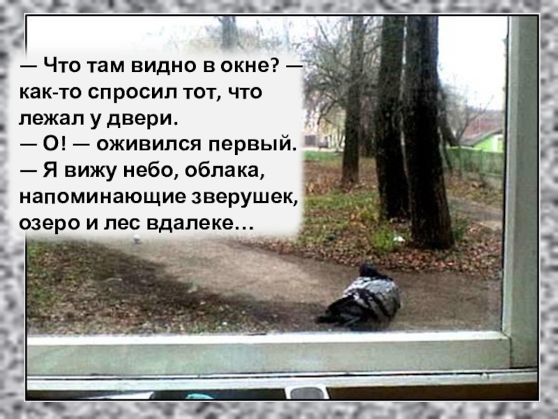 Слайд 4— Что там видно в окне? — как-то спросил тот, что