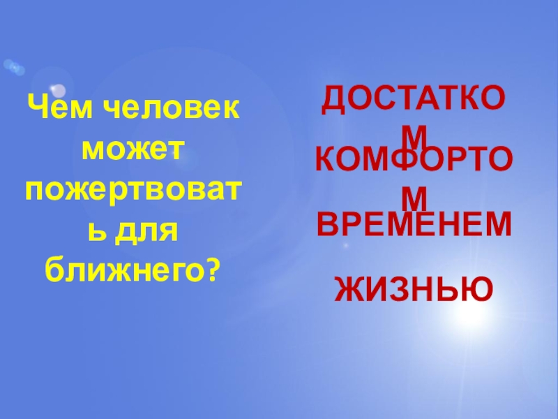 Слайд 17Чем человек может пожертвовать для ближнего?
