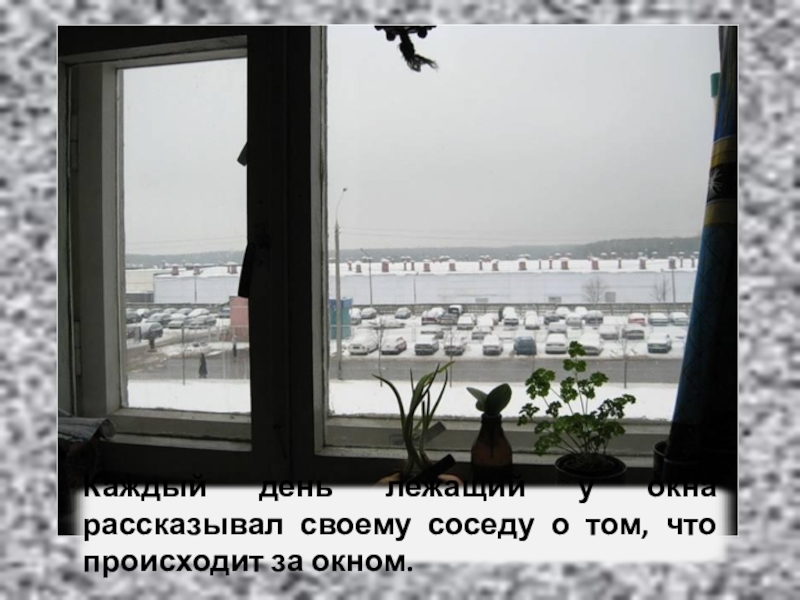 Слайд 5Каждый день лежащий у окна рассказывал своему соседу о том, что