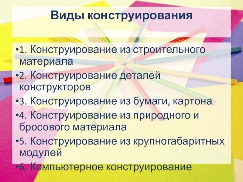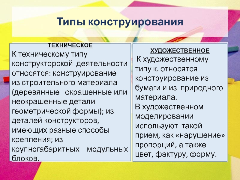 К художественному типу к. относятся конструирование из бумаги и из природного материала.