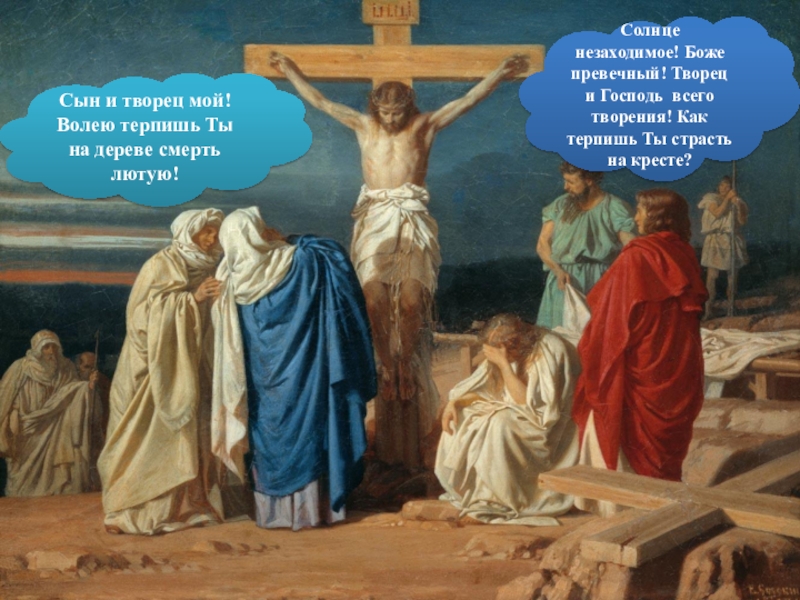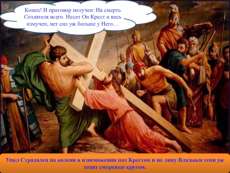 Упал Страдалец на колени в изнеможении под Крестом и по лицу Владыки тени уж ходят смертные кругом.