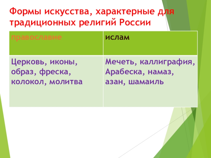 Слайд 36Формы искусства, характерные для традиционных религий России