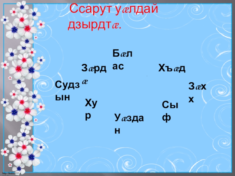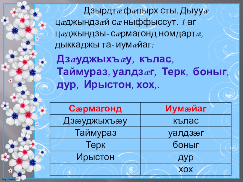 Дзæуджыхъæу, кълас, Таймураз, уалдзæг, Терк, боныг, дур, Ирыстон, хох,.