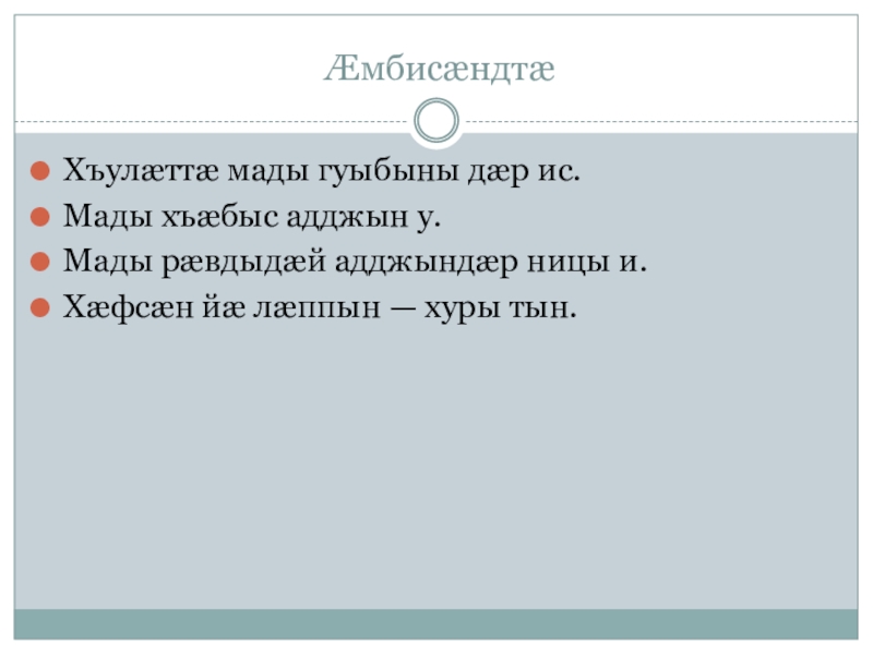 Æмбисæндтæ  Хъулæттæ мады гуыбыны дæр ис.Мады хъæбыс адджын у.Мады