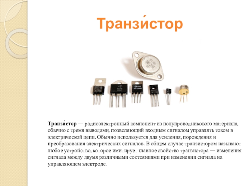 Слайд 29 Транзи́стор
