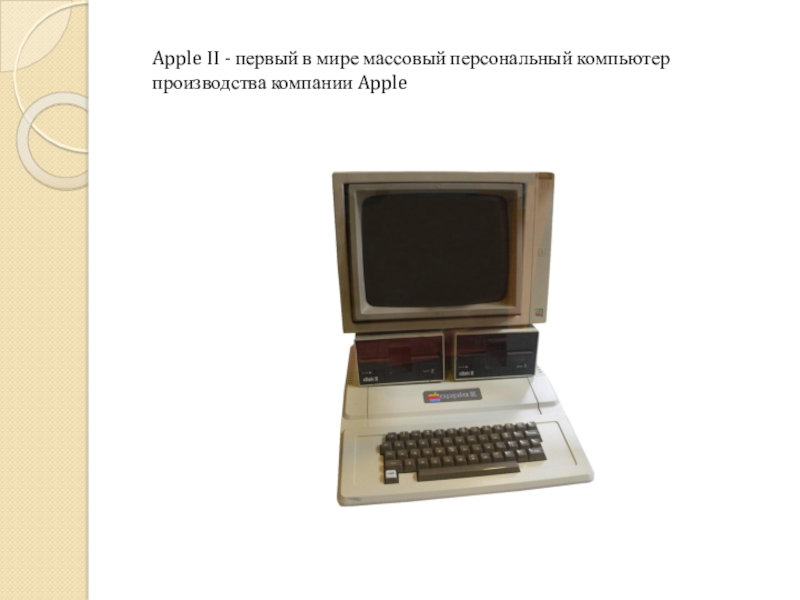 Слайд 38Apple II - первый в мире массовый персональный компьютер производства компании Apple
