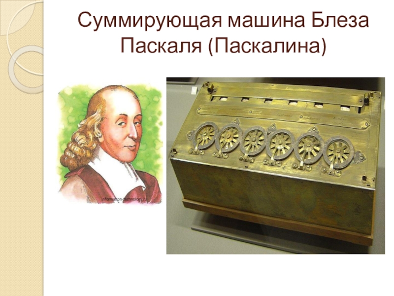 Слайд 9Суммирующая машина Блеза Паскаля (Паскалина)