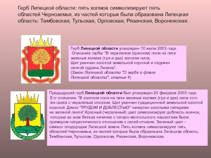 Герб Липецкой области утвержден 10 июля 2003 года.
