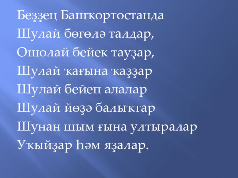 Ҙә-ҙә-ҙә- Беҙҙә данлы Урал бар.