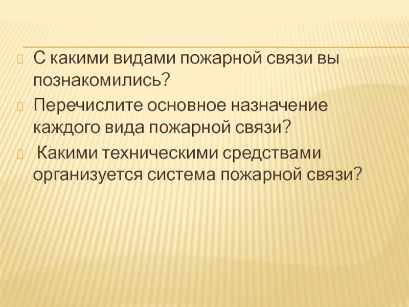 -изучить виды (типы) организации пожарной связи,