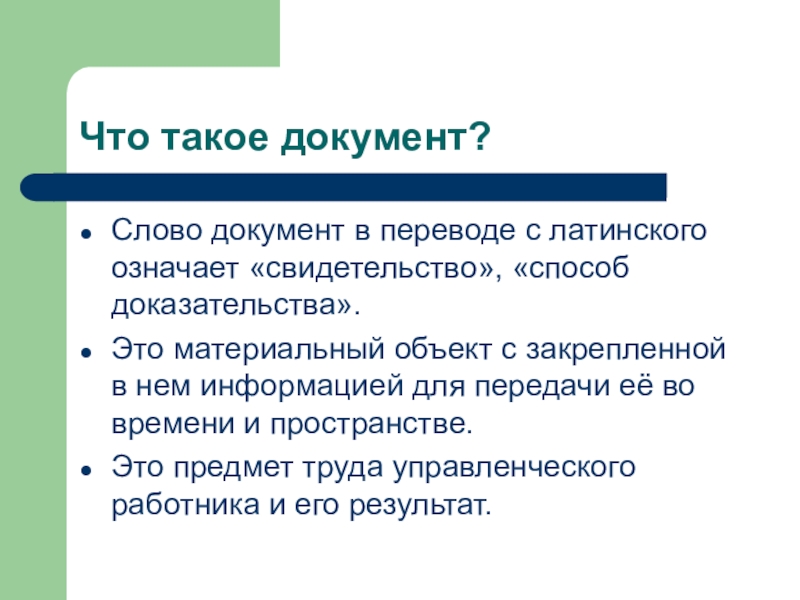Слово документ в переводе с латинского означает «свидетельство», «способ