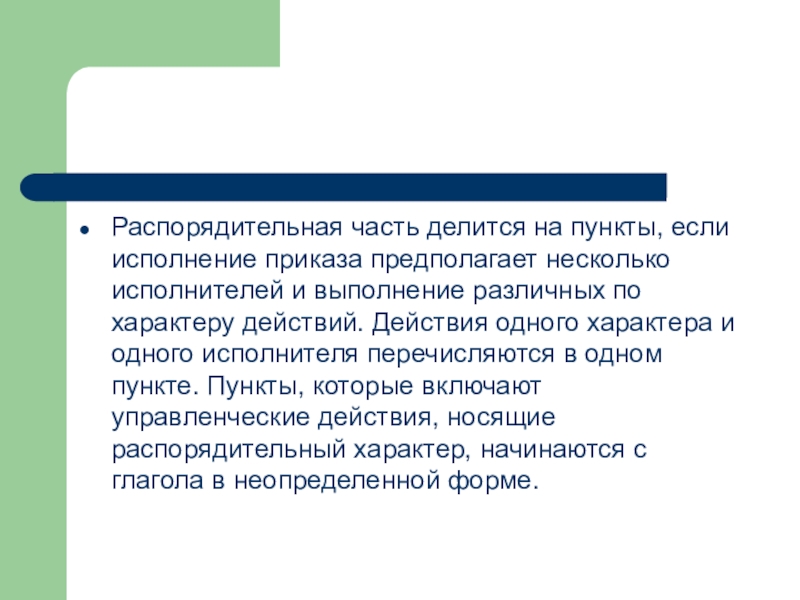 Слайд 16Распорядительная часть делится на пункты, если исполнение приказа предполагает несколько исполнителей