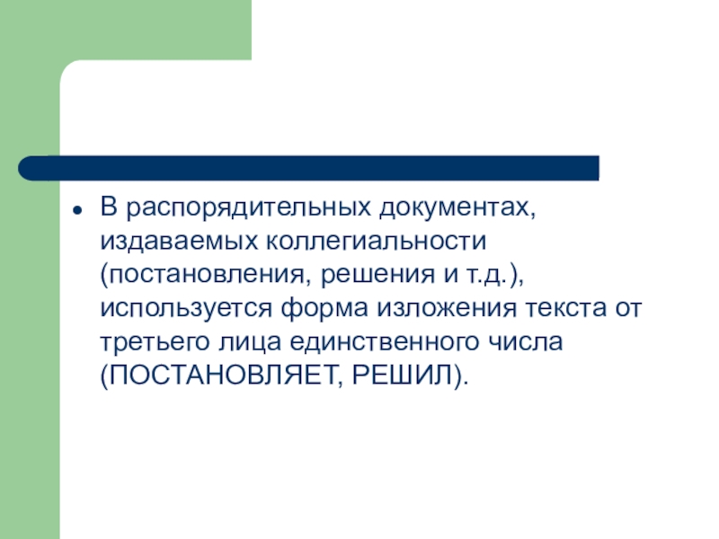 изложения текста от третьего лица единственного числа (ПОСТАНОВЛЯЕТ, РЕШИЛ).
