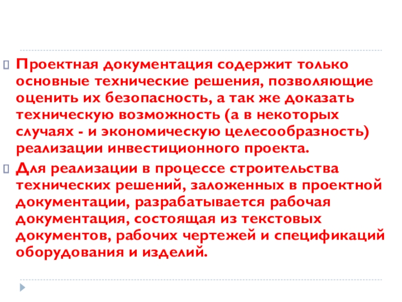 Слайд 6Проектная документация содержит только основные технические решения, позволяющие оценить их безопасность,
