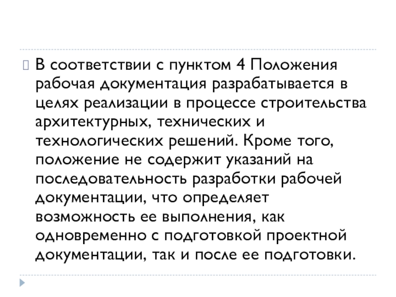 Слайд 11В соответствии с пунктом 4 Положения рабочая документация разрабатывается в целях
