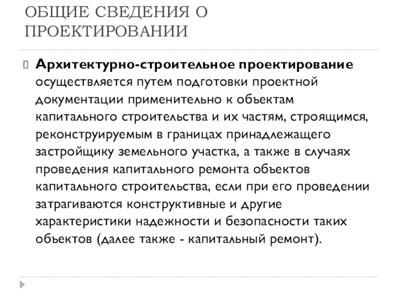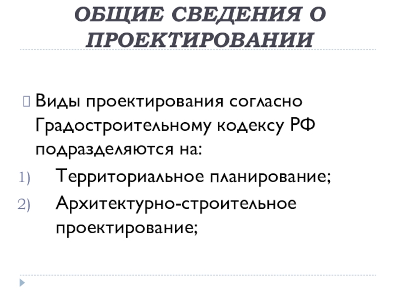 Слайд 1ОБЩИЕ СВЕДЕНИЯ О ПРОЕКТИРОВАНИИ