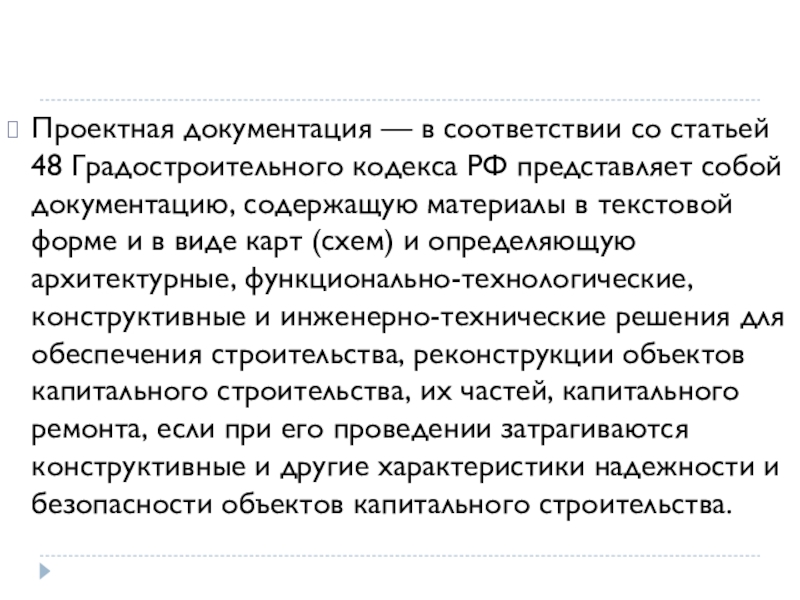 Слайд 13Проектная документация — в соответствии со статьей 48 Градостроительного кодекса РФ