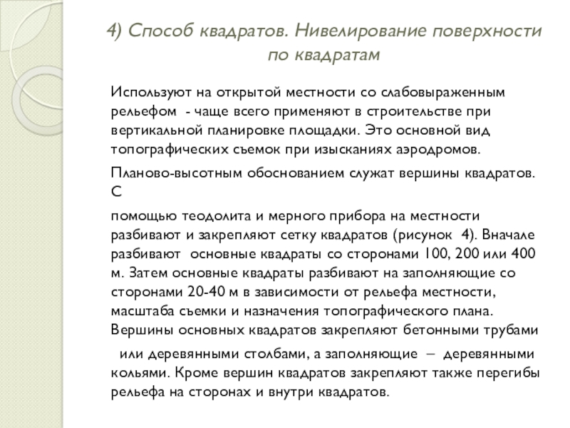 Слайд 114) Способ квадратов. Нивелирование поверхности по квадратам