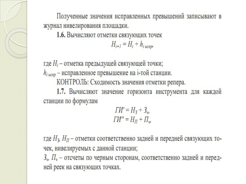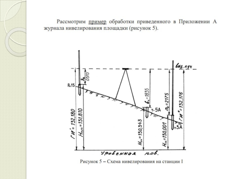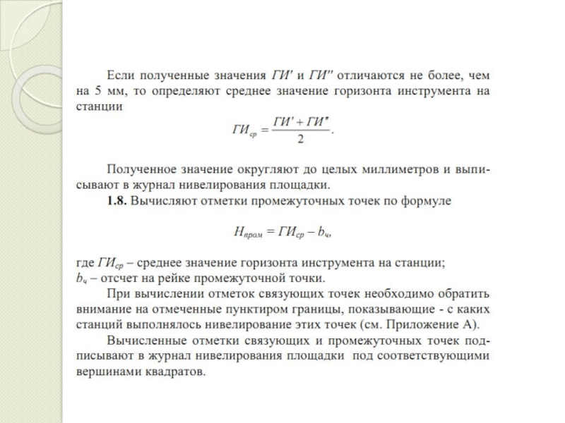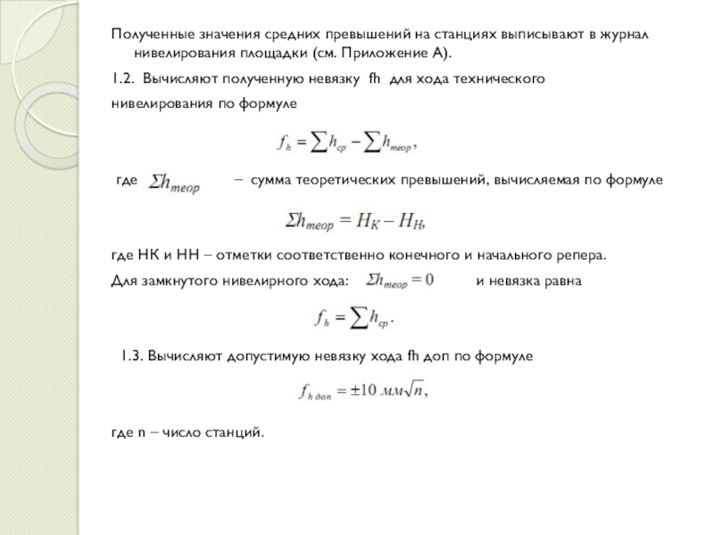 Слайд 19Полученные значения средних превышений на станциях выписывают в журнал нивелирования площадки