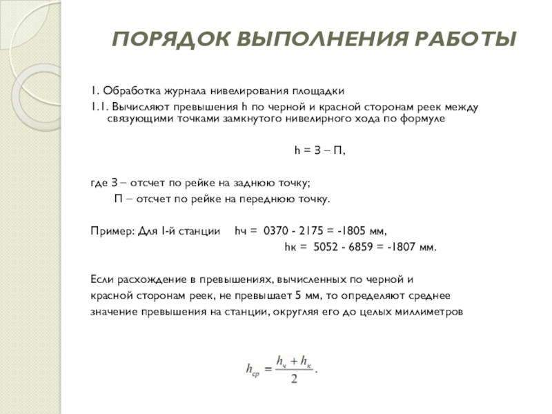 превышения h по черной и красной сторонам реек между связующими точками замкнутого нивелирного хода по формуле