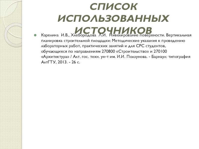 Слайд 26СПИСОК ИСПОЛЬЗОВАННЫХ ИСТОЧНИКОВ