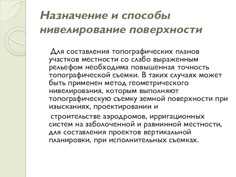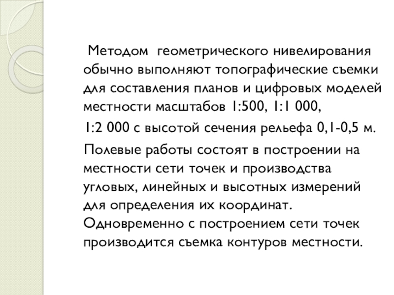 Слайд 3 Методом геометрического нивелирования обычно выполняют топографические съемки для составления