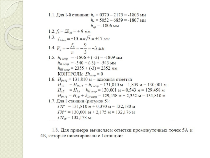 Пример: Для I-й станции hч = 0370 - 2175 = -1805 мм,