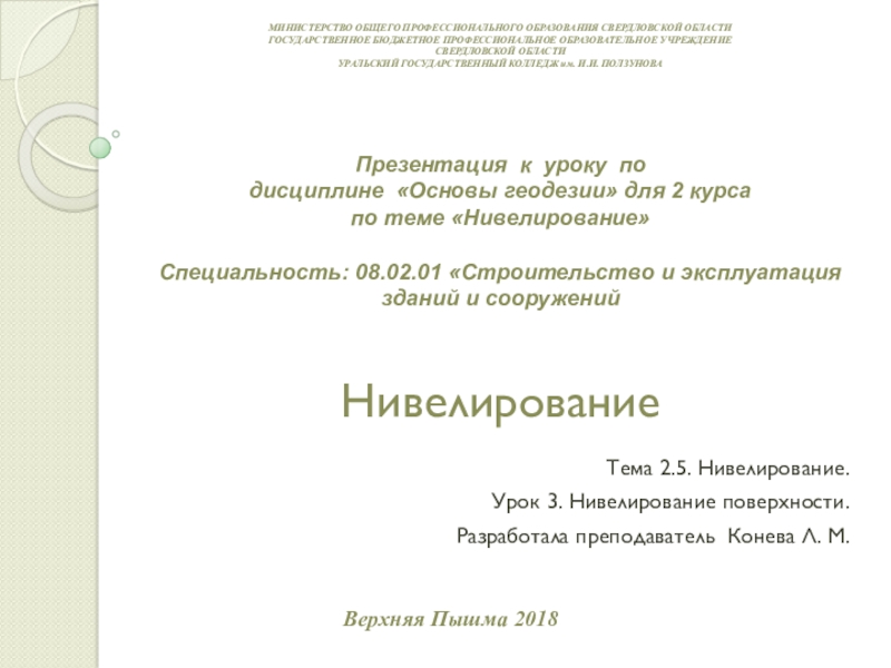 Карелина И.В., Хлебородова Л.И. Нивелирование поверхности. Вертикальная планировка строительной