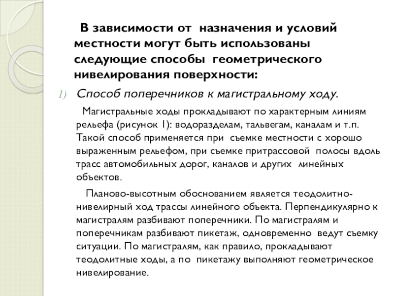 Слайд 5Рисунок 1 – Способ поперечников к магистральному ходу