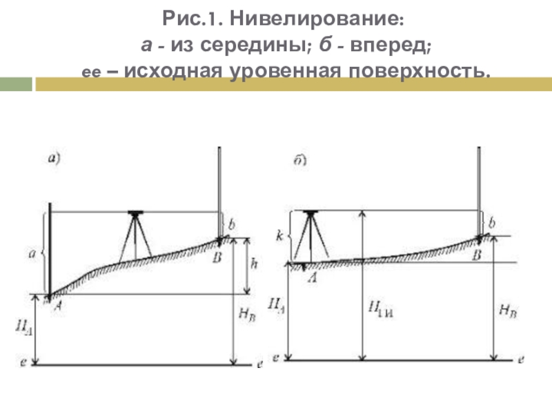 Геометрическое нивелирование выполняют двумя способами - “из середины” и “вперед”.