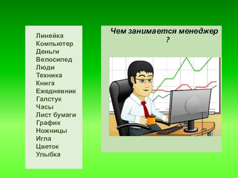 5. В переводе с английского языка менеджер – это управляющий, заведующий и он …..