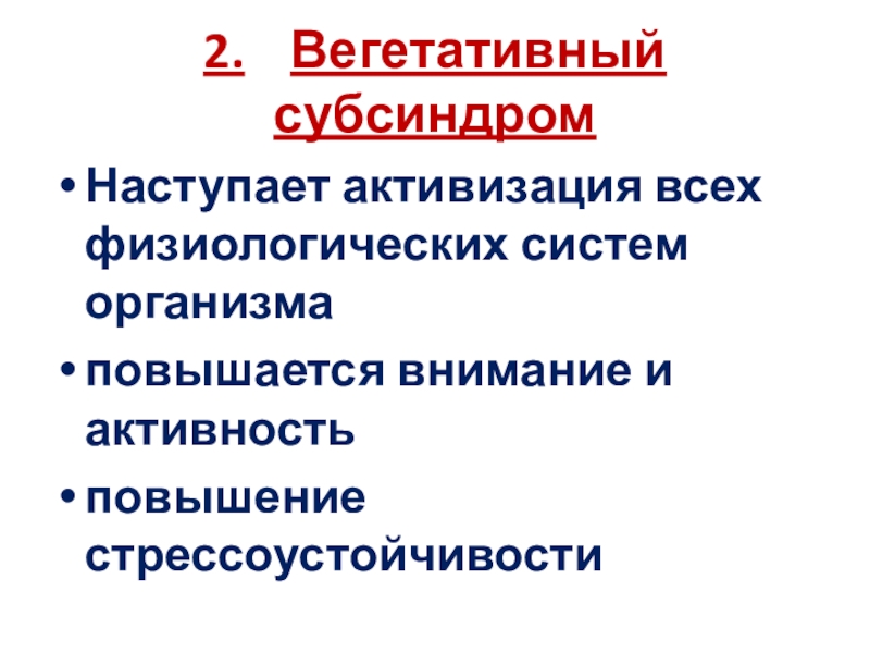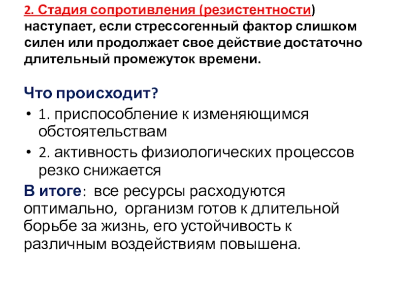 В итоге: все ресурсы расходуются оптимально, организм готов к длительной борьбе за жизнь, его устойчивость к различным воздействиям повышена.