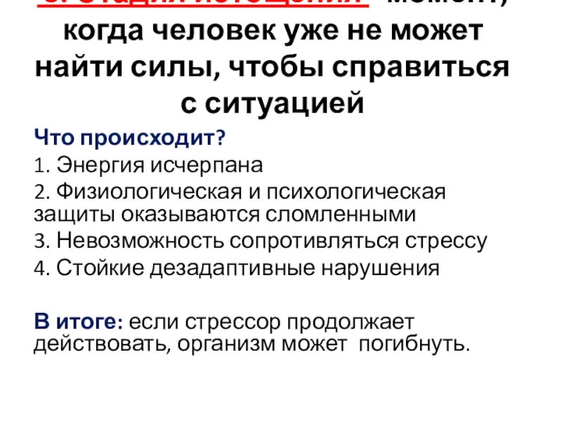 В итоге: если стрессор продолжает действовать, организм может погибнуть.