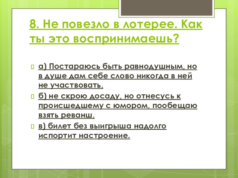 Слайд 178. Не повезло в лотерее. Как ты это воспринимаешь?