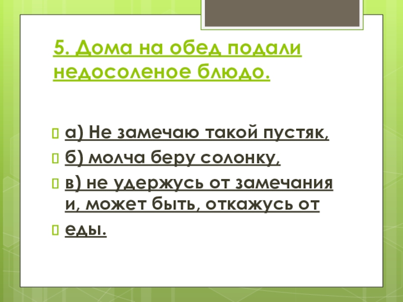Слайд 145. Дома на обед подали недосоленое блюдо.