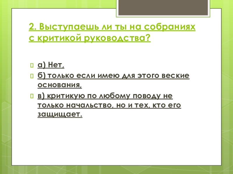 Слайд 112. Выступаешь ли ты на собраниях с критикой руководства?