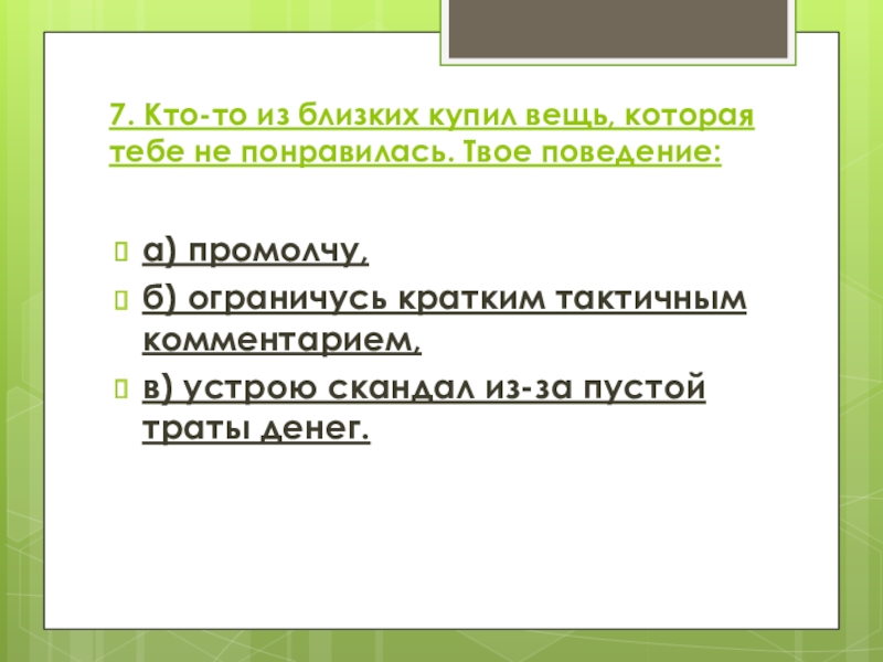 Слайд 167. Кто-то из близких купил вещь, которая тебе не понравилась. Твое