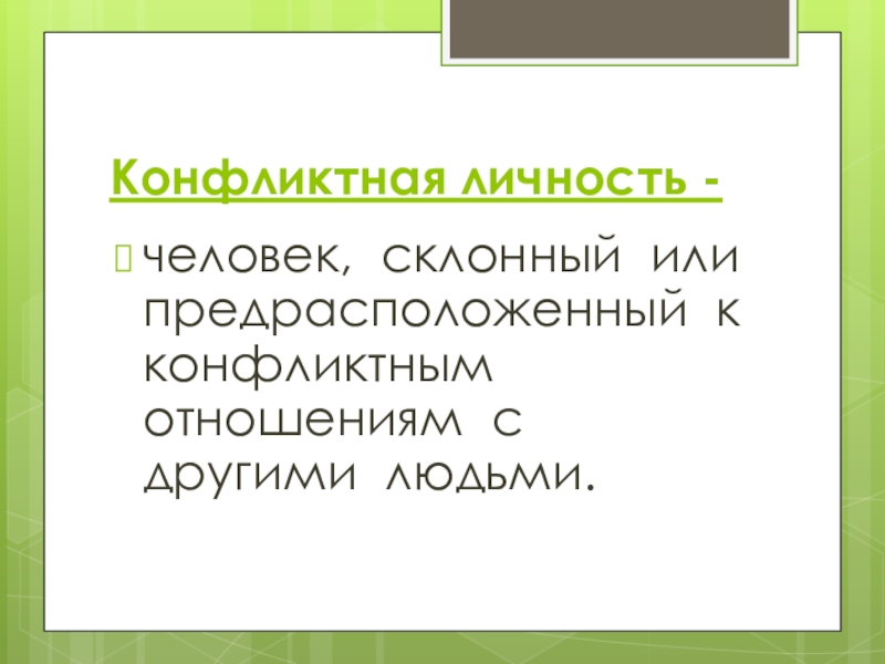 человек, склонный или предрасположенный к конфликтным отношениям с