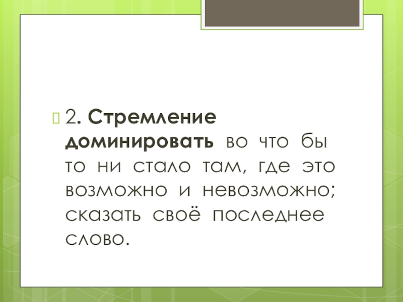 Слайд 42. Стремление доминировать во что бы то ни стало там, где