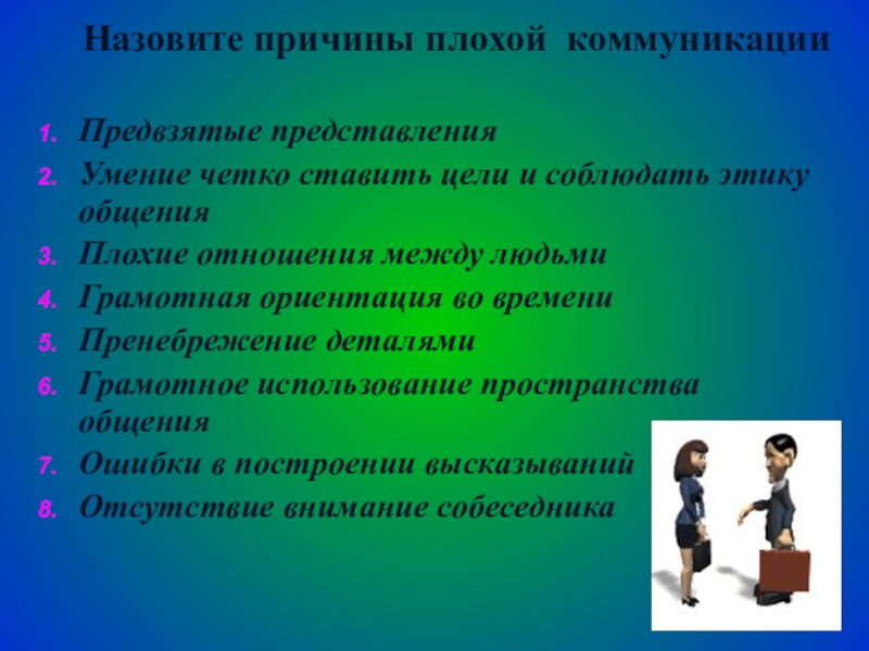 Слайд 8Назовите причины плохой коммуникации