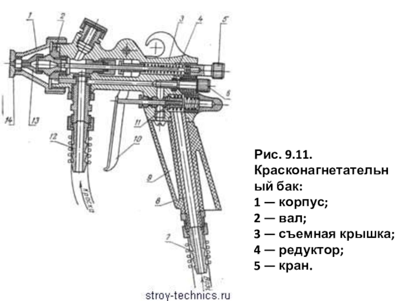 Слайд 31Рис. 9.14. Ручной краскопульт: