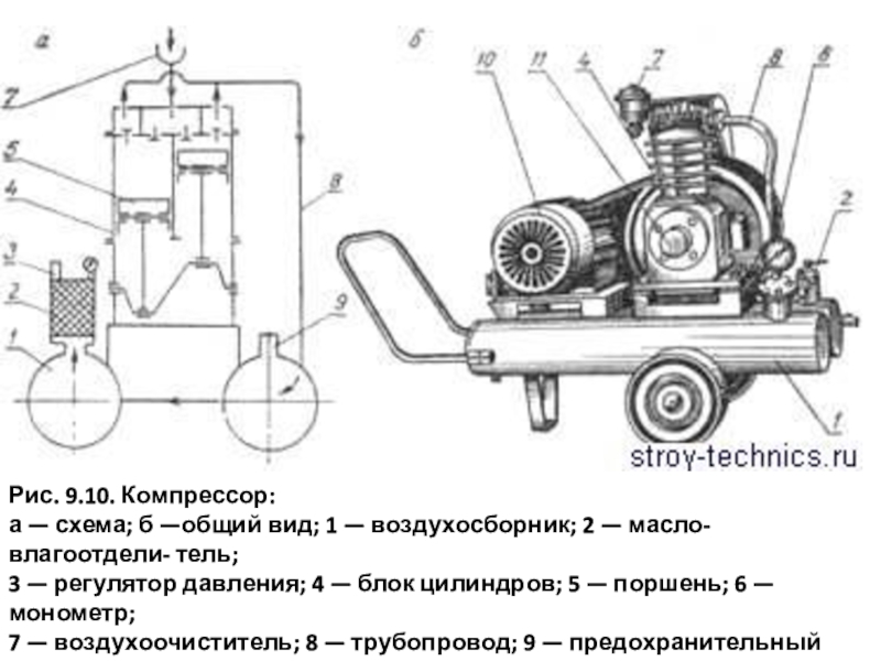 7 — воздухоочиститель; 8 — трубопровод; 9 — предохранительный клапан;