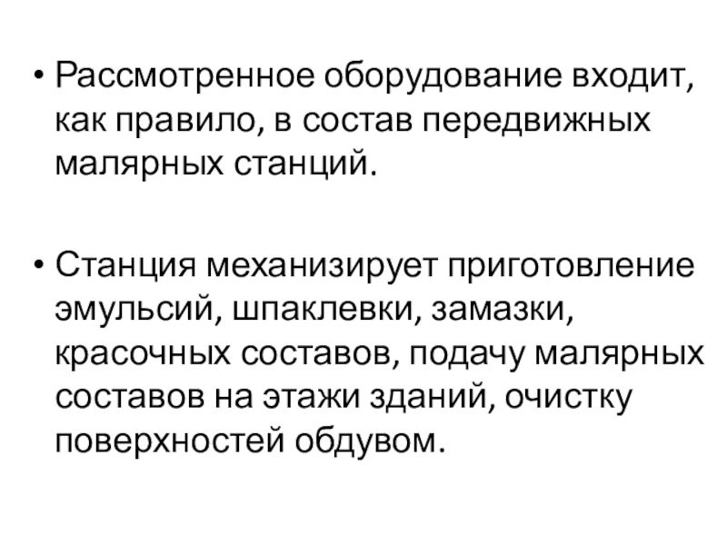 Слайд 32Рассмотренное оборудование входит, как правило, в состав передвижных малярных станций.