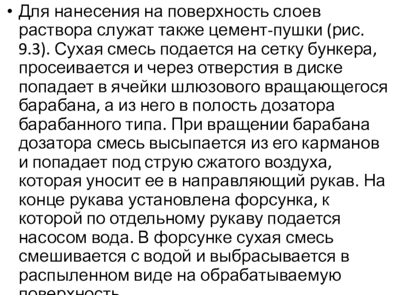 Слайд 12Для нанесения на поверхность слоев раствора служат также цемент-пушки (рис. 9.3).