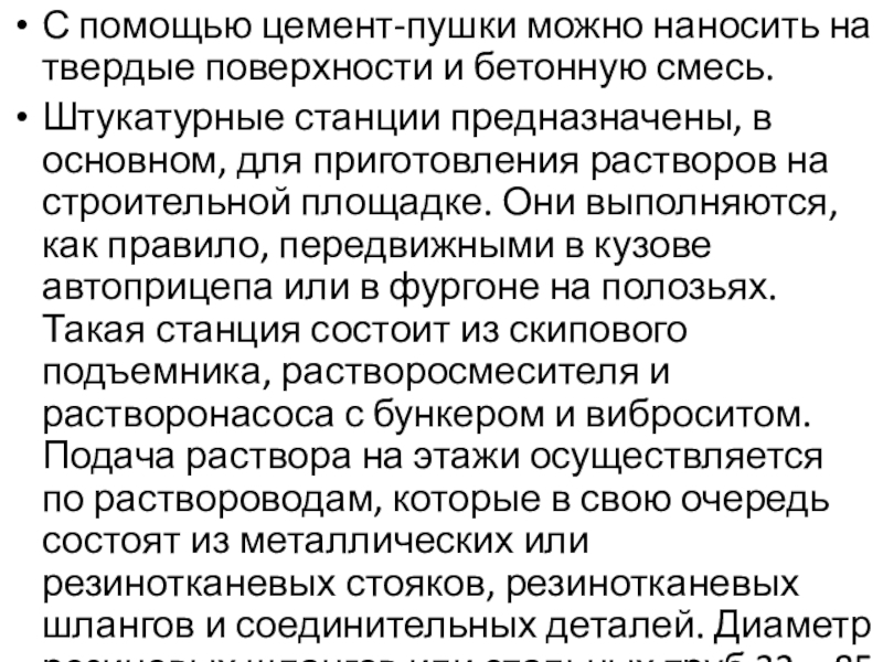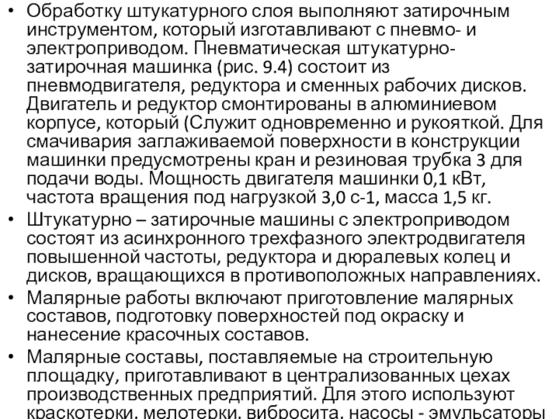 Слайд 9Для механизации штукатурных работ используют штукатурные агрегаты и штукатурные станции.