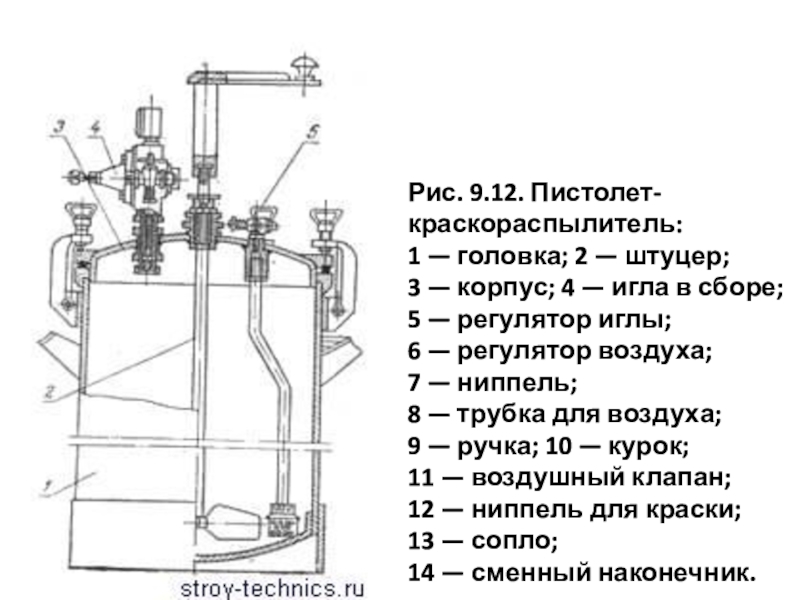 Слайд 27Рис. 9.12. Пистолет-краскораспылитель: