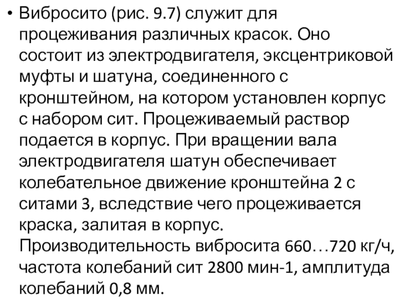 Слайд 20Вибросито (рис. 9.7) служит для процеживания различных красок. Оно состоит из