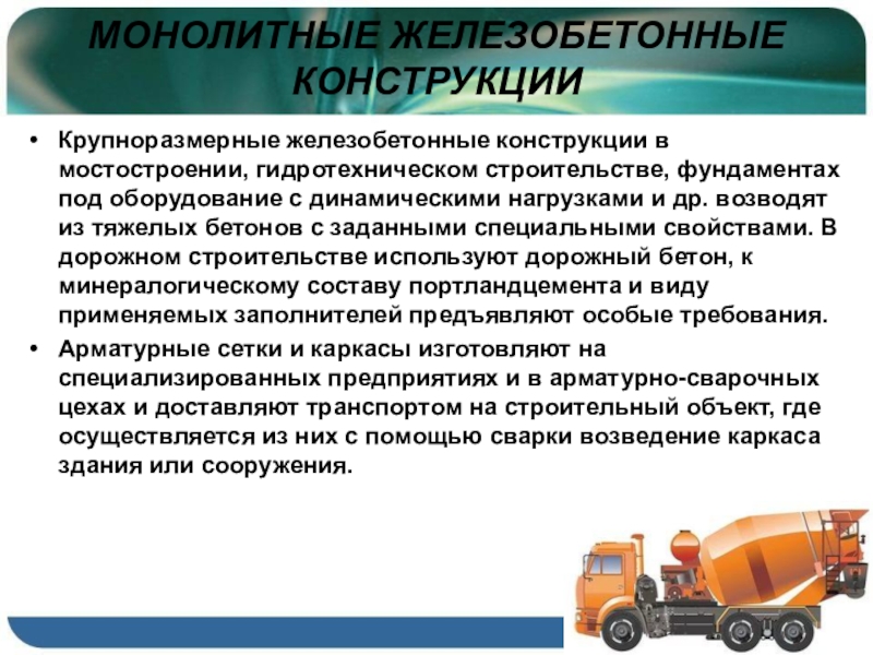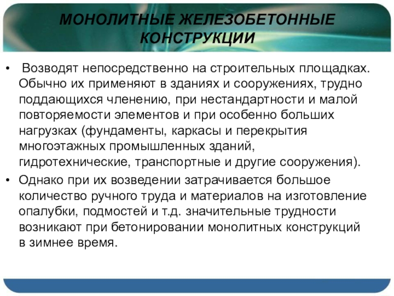Слайд 4МОНОЛИТНЫЕ ЖЕЛЕЗОБЕТОННЫЕ КОНСТРУКЦИИ