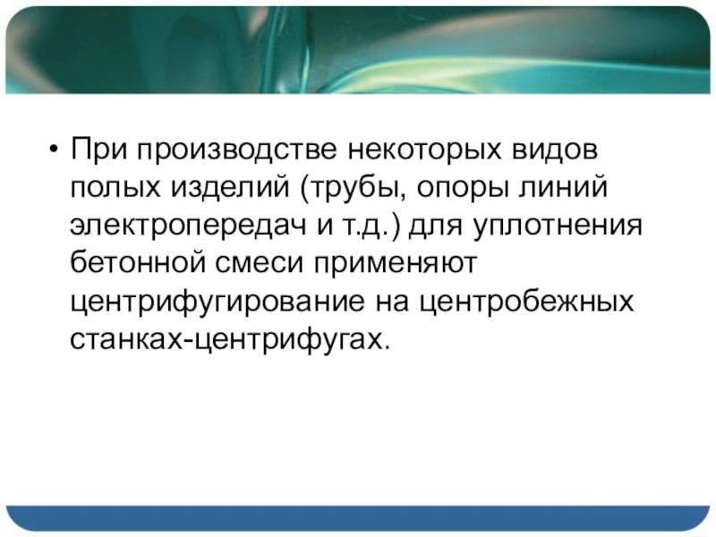 т.д.) для уплотнения бетонной смеси применяют центрифугирование на центробежных станках-центрифугах.